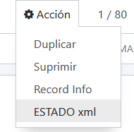 1. Usar el botón "Acción" y escoger la opción "Estado xml"