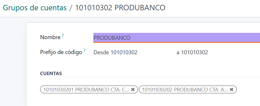 Para mas información ver el video donde se configuró los grupos de cuentas.
