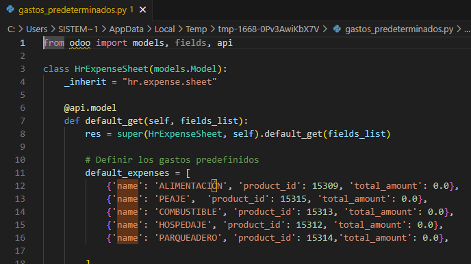Tener en cuenta el id de las variantes de productos al momento de pasar el módulo a otra empresa(orfa_gastos_predeterminados)