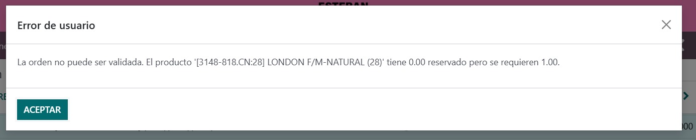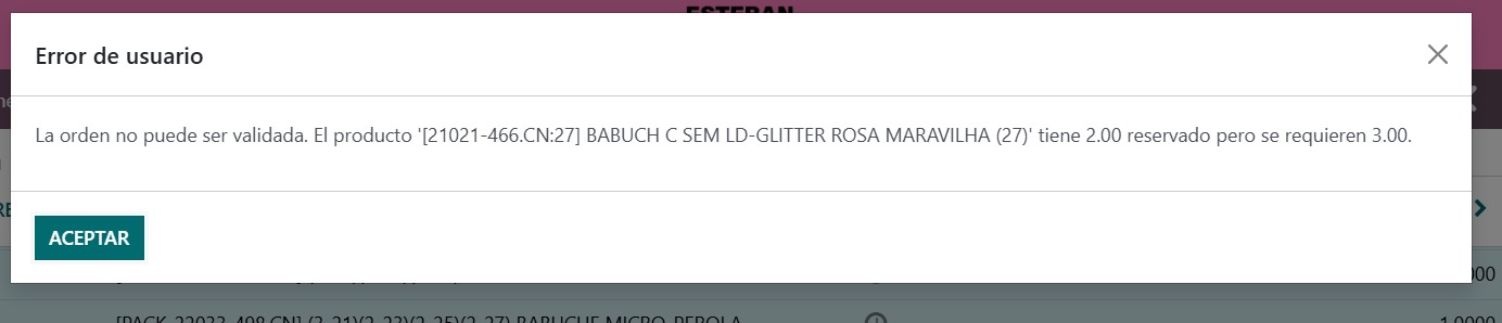 El siguiente error es causado porque no hay suficiente cantidad a mano de un producto.