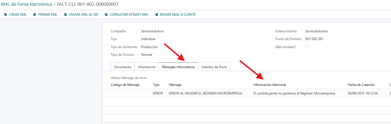 3. Para revisar el mensaje de error revisar en la pestaña Mensajes Informativos y busque la columna Información Adicional, ahí le indicará el motivo por el cual no se autorizó